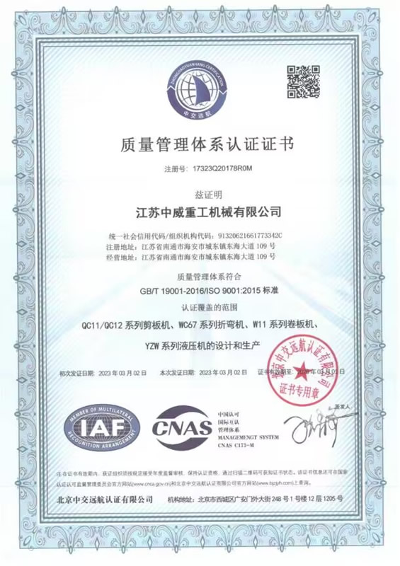 质量管理体系认证证书